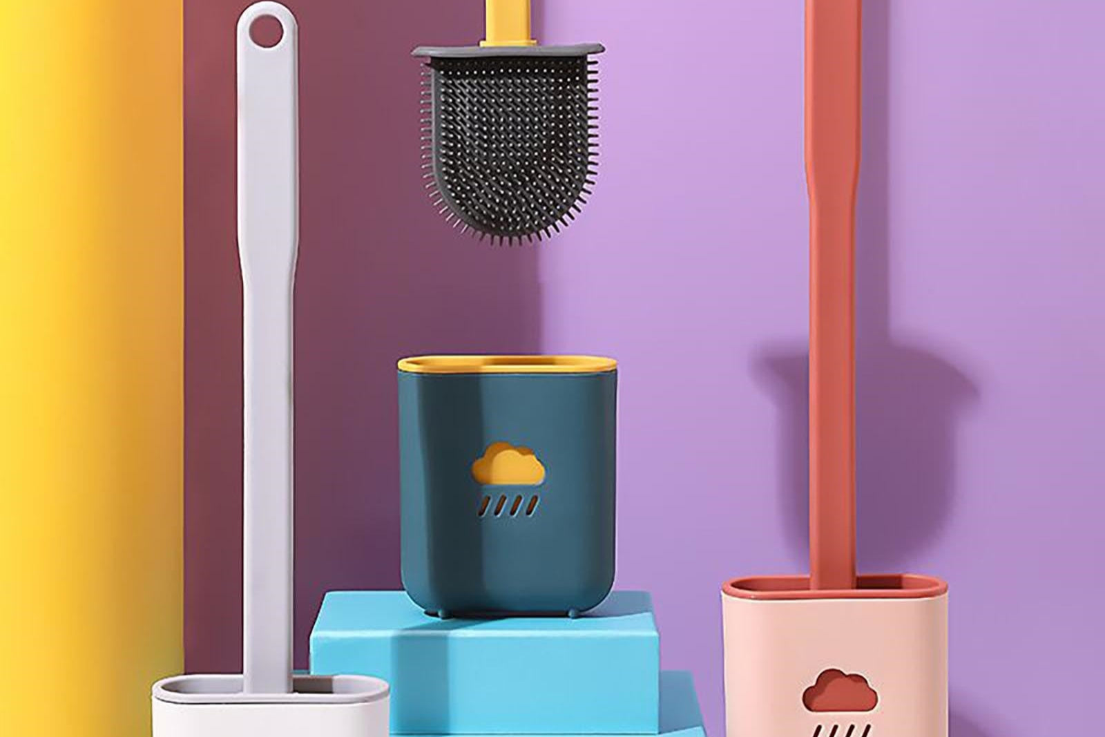 Toalettborste av silikon i glada färger, kreativ och trendig design som skapar en färgklick i ditt badrum.
